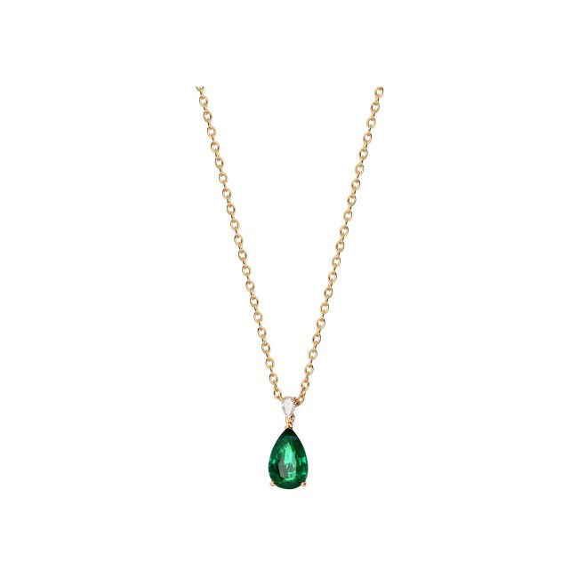Pendentif Absolu en or jaune, émeraude taille poire et diamant taille poire