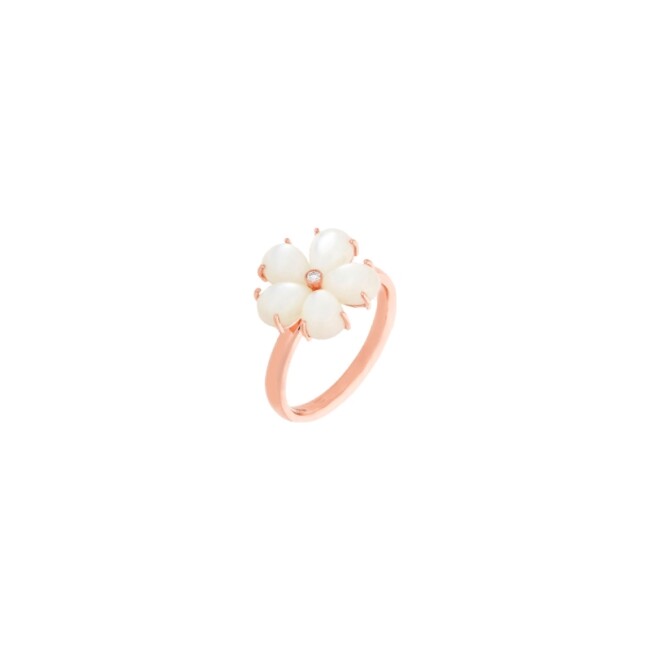 Primavera Bague Cesare Pompanon Primavera grand modèle en or rose et nacre blanche et diamants blancs