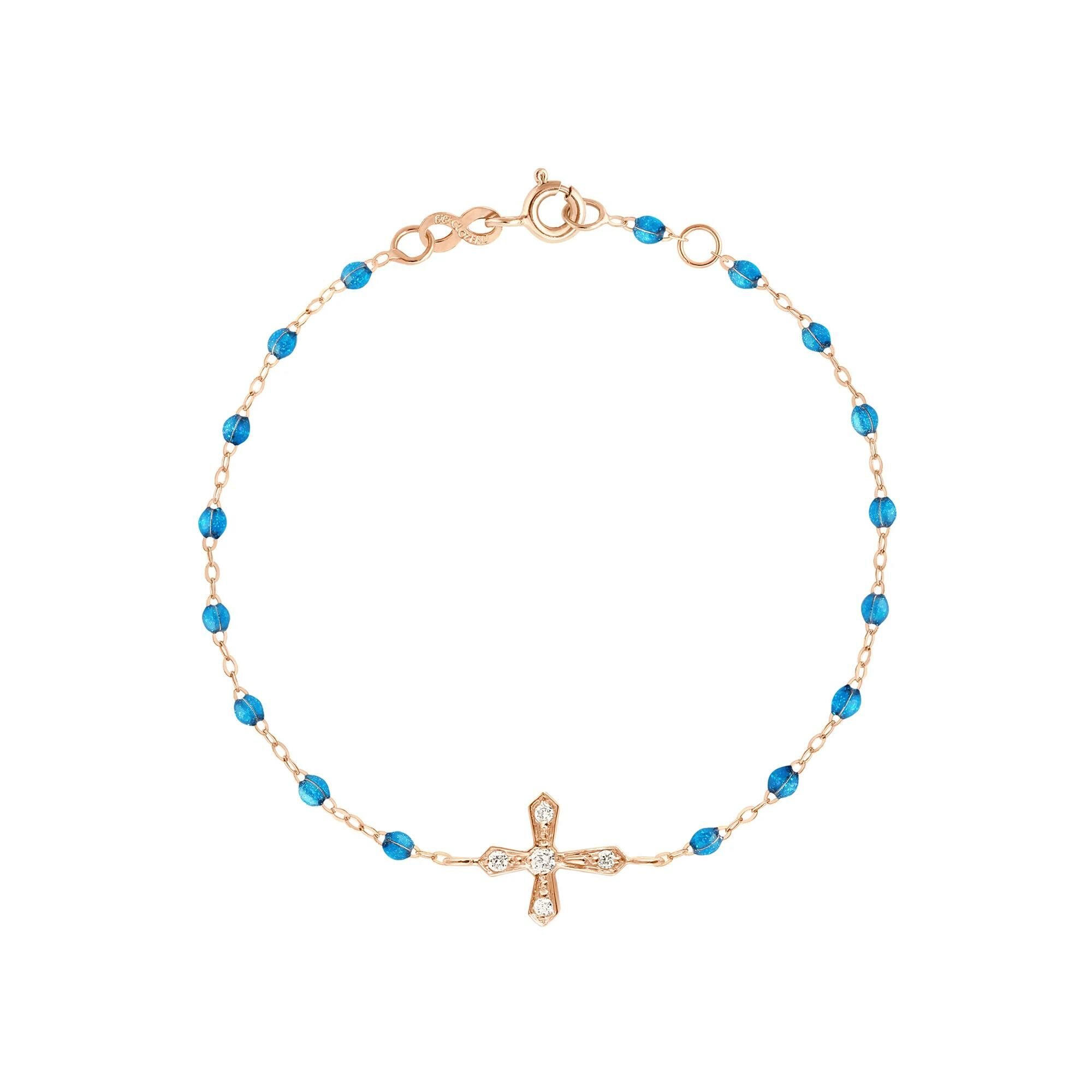 Bracelet Gigi Clozeau Croix Vintage en or rose, résine azur et diamants, taille 17cm