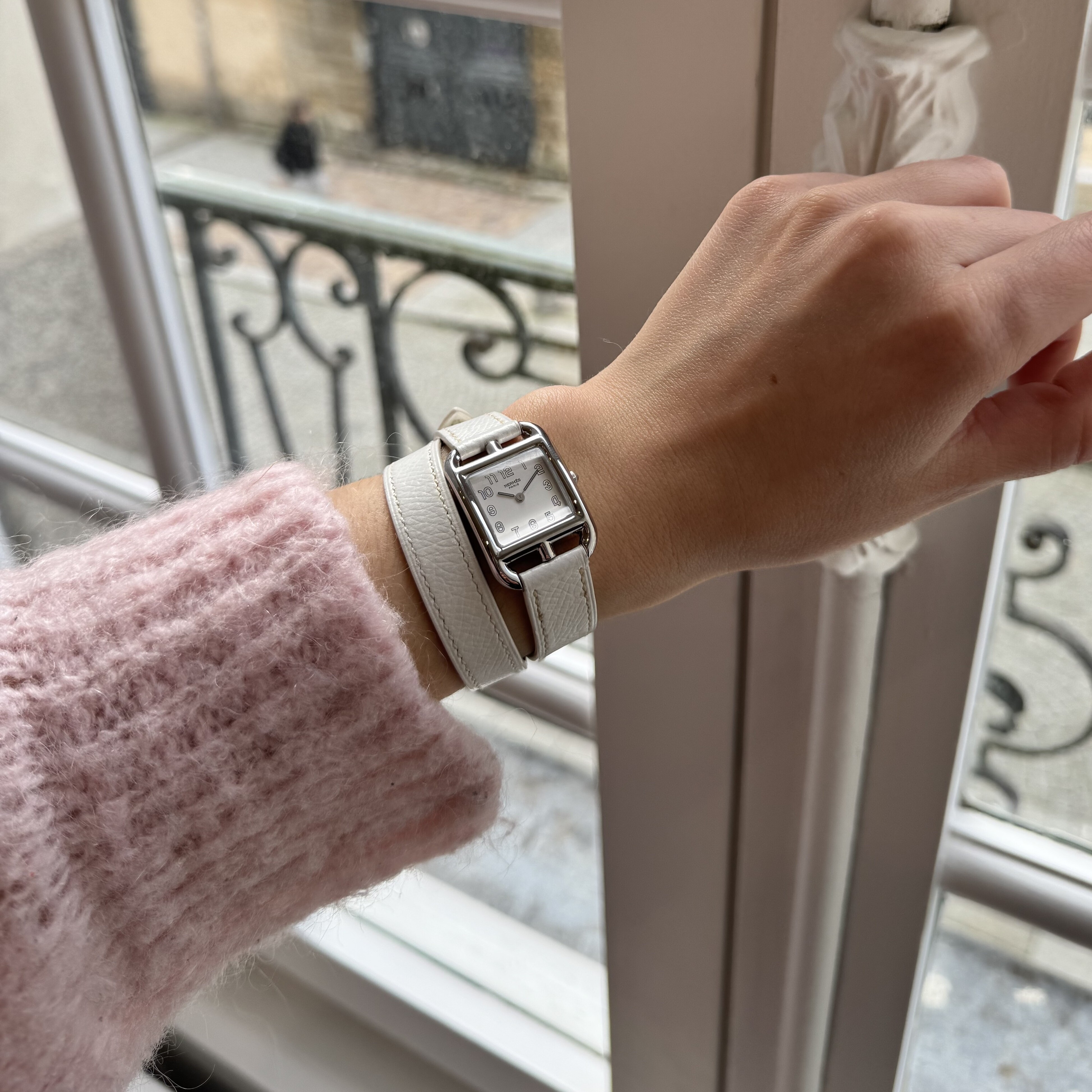 La Hermès Cape Cod est un modèle iconique de la maison Hermès, créé en 1991. Son design singulier, inspiré du motif « Chaîne d’Ancre », reflète parfaitement l’élégance minimaliste et l’audace créative propres à Hermès.
