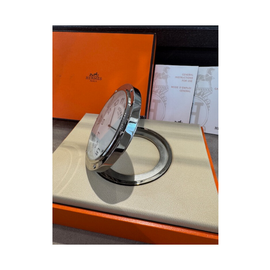 Pensée pour accompagner les déplacements, cette pendulette de voyage associe design raffiné et praticité. Son boîtier aux lignes douces, facilement transportable, reflète le souci du détail et la qualité de finition propres à Hermès. Le cadran épuré, lisible et harmonieux, permet une lecture claire de l’heure, où que l’on se trouve.