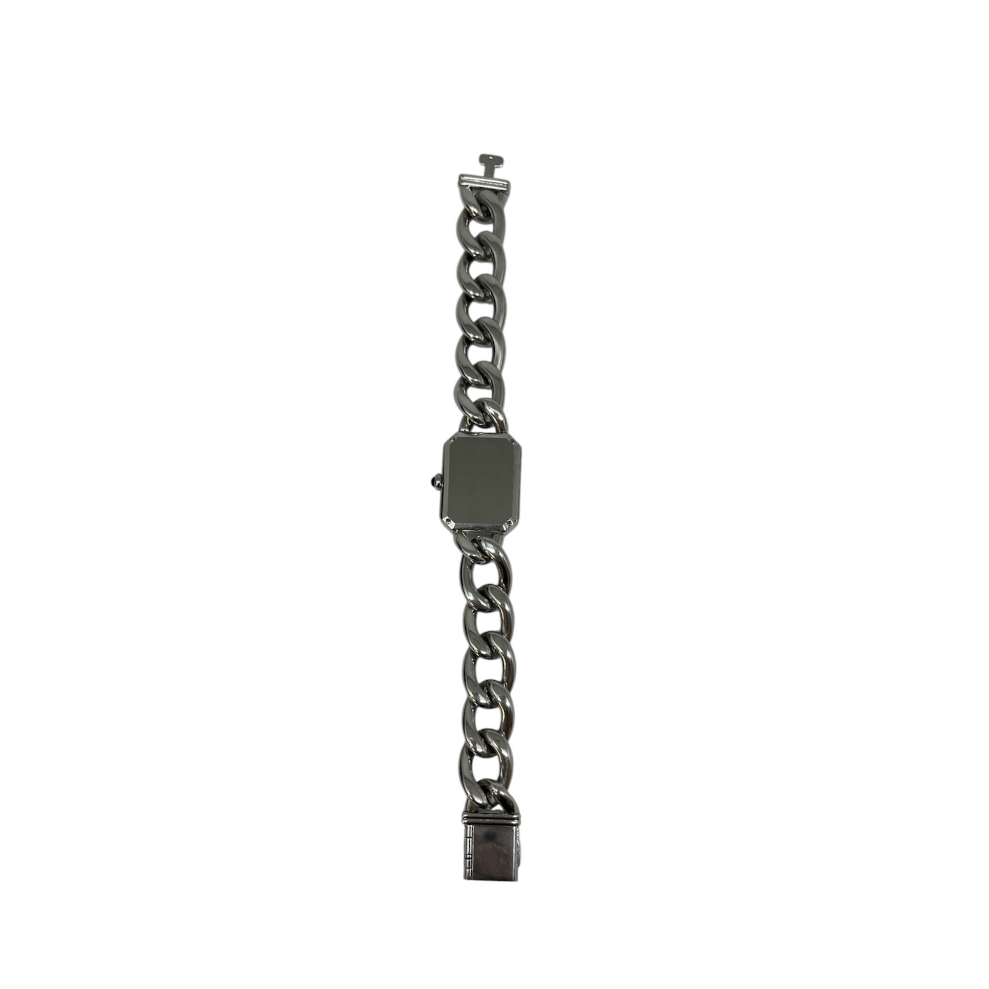 Le cadran est noir et le bracelet ainsi que le cadran sont en acier. Cette montre est à mouvement quartz. La montre est vendue sans écrin ni carte de garantie.