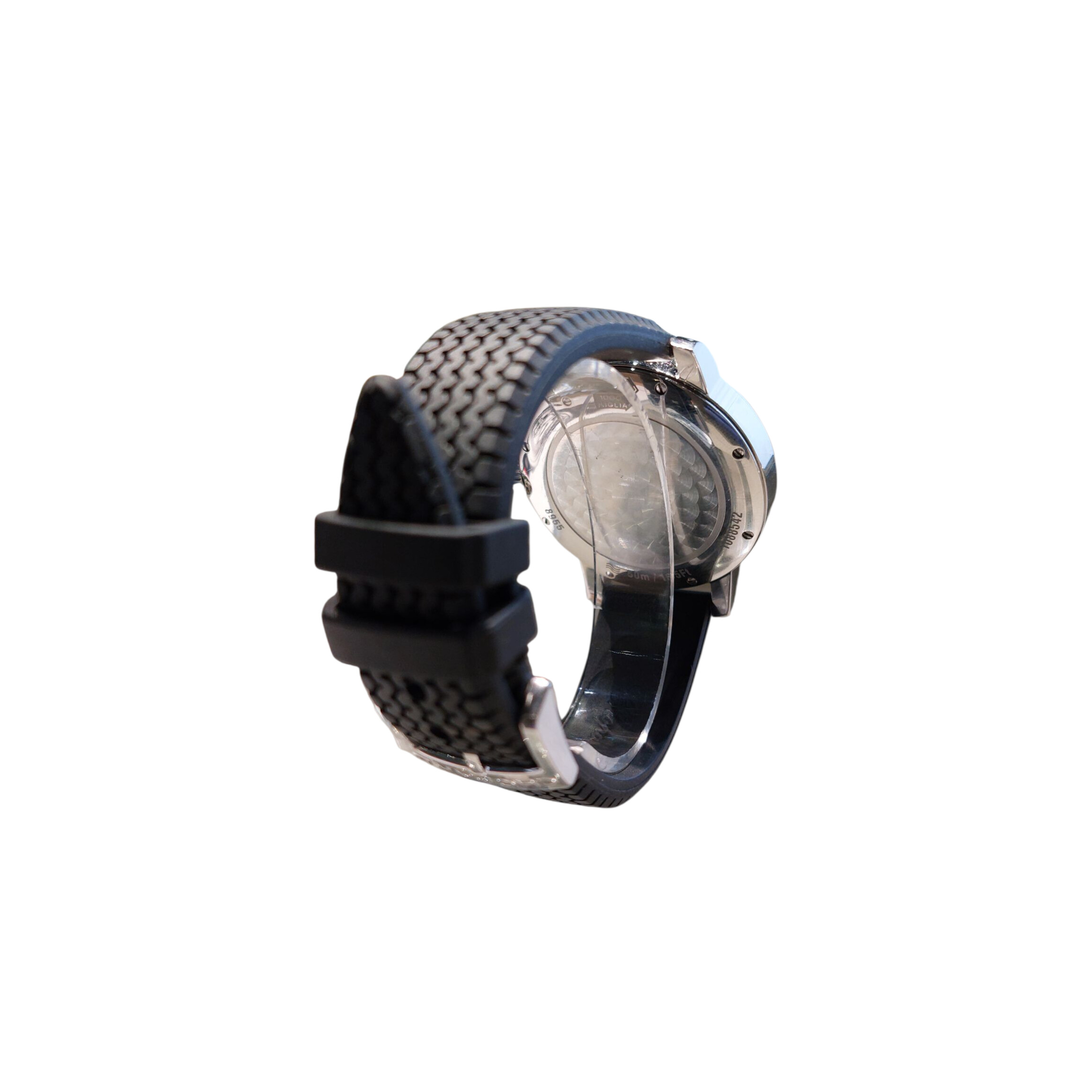 Le boîtier est en acier et le cadran est noir à chiffres arabes. . Le bracelet est en caoutchouc noir avec une boucle ardillon. La montre est vendue sans son écrin mais avec sa garantie, son certificat COSC et son manuel d'utilisation.