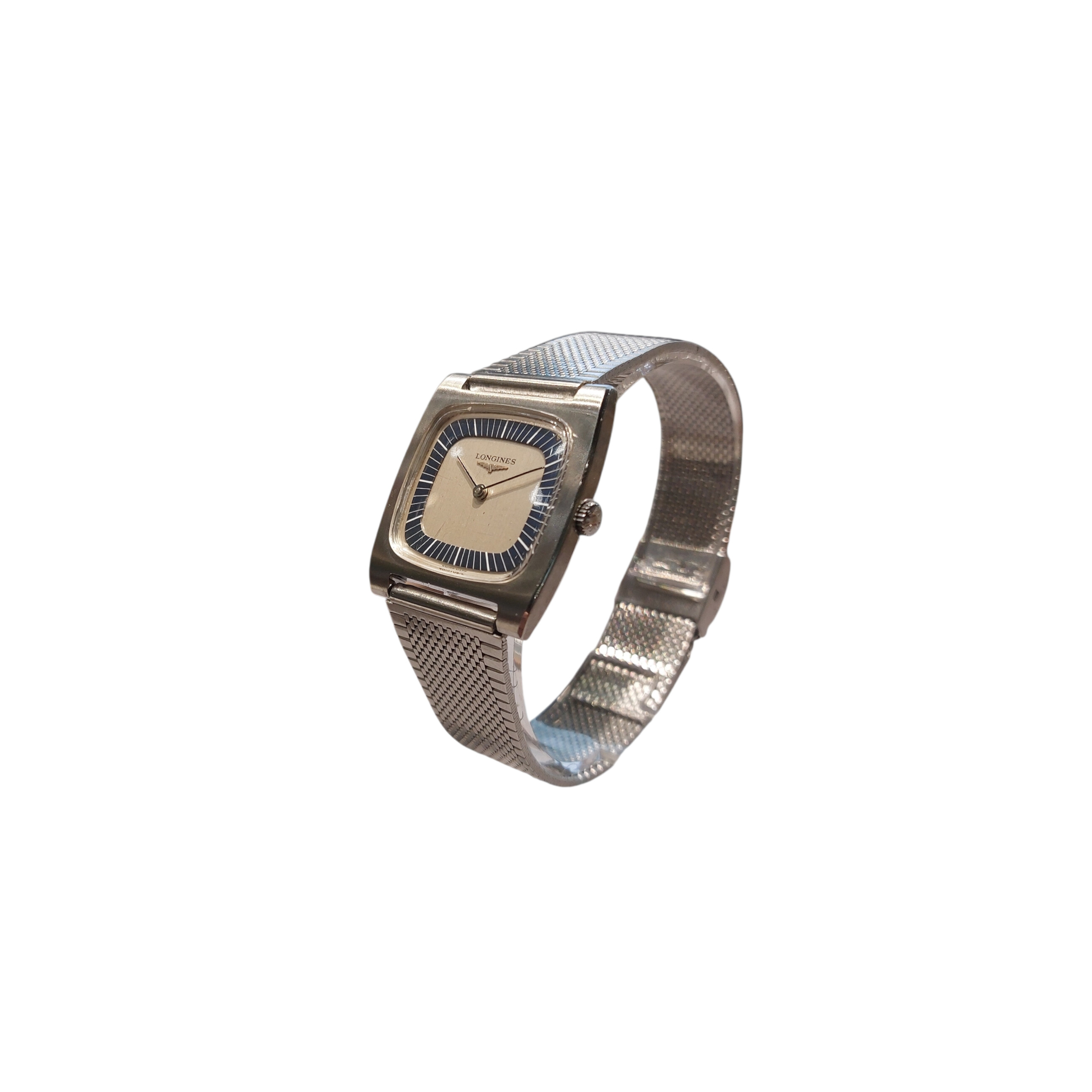 Cette Longines Flagship d’occasion reflète parfaitement l’esprit de son époque. Son boîtier au design carré aux angles adoucis, typique des années 1960-1970, témoigne de l’audace stylistique de Longines durant cette période. À contre-courant des montres rondes traditionnelles, cette forme géométrique affirme une élégance moderne et raffinée, très prisée à l’époque.