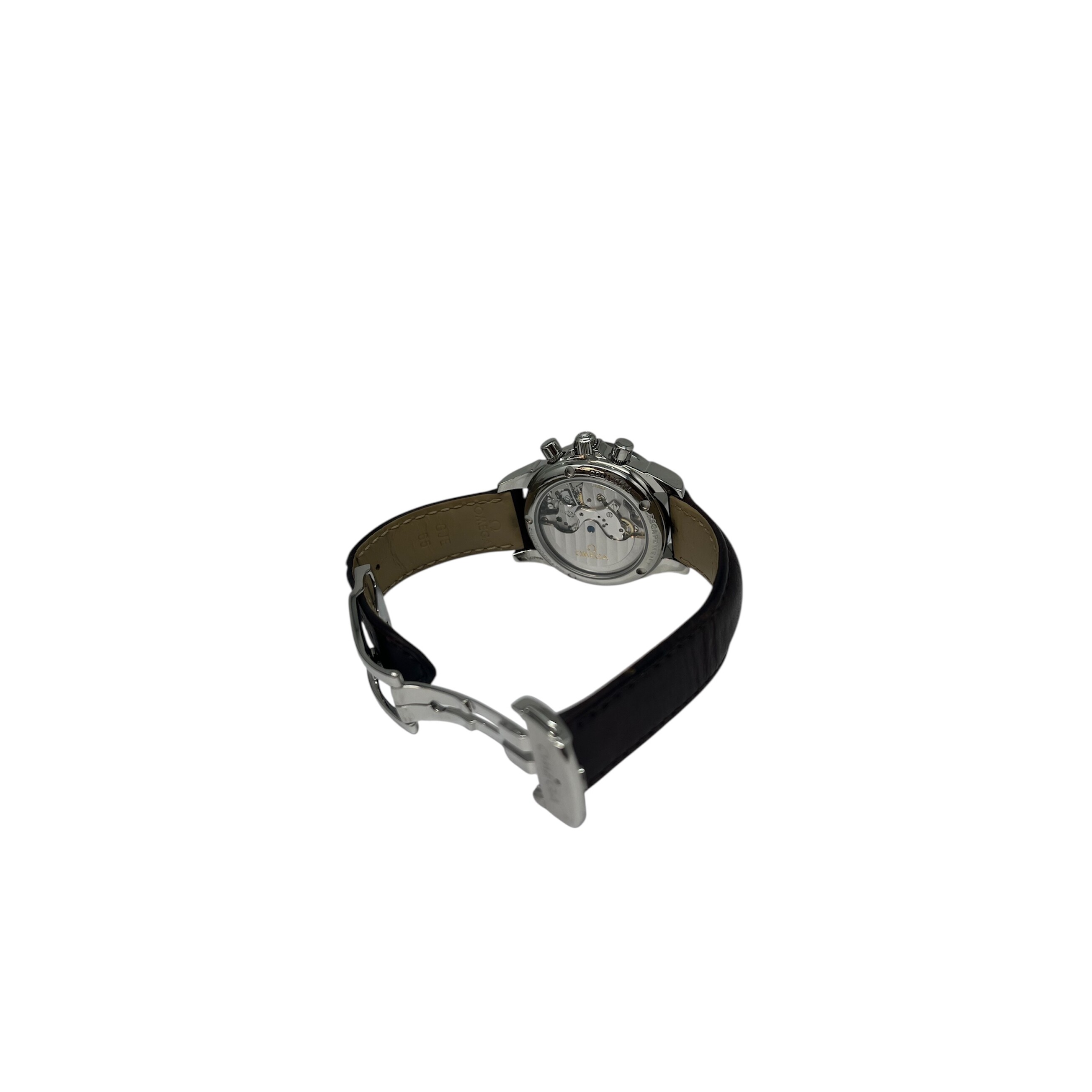 Animée par un mouvement automatique, cette Omega offre la précision et la fiabilité caractéristiques de la marque, tout en garantissant un plaisir d’utilisation authentique grâce à son remontage naturel au poignet. Son bracelet en cuir brun, souple et chaleureux, assure un confort optimal, tandis que la boucle déployante ajoute une touche de praticité et de sécurité.