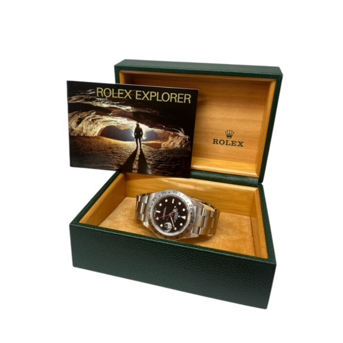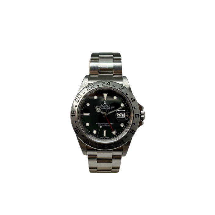 Montre Rolex Explorer II à mouvement automatique. Le boîtier en acier de diamètre 40mm. Le cadran est noir à index. Le bracelet Oyster est en acier avec une boucle déployante. La montre est vendue avec son écrin et avec ses papiers d’origine.