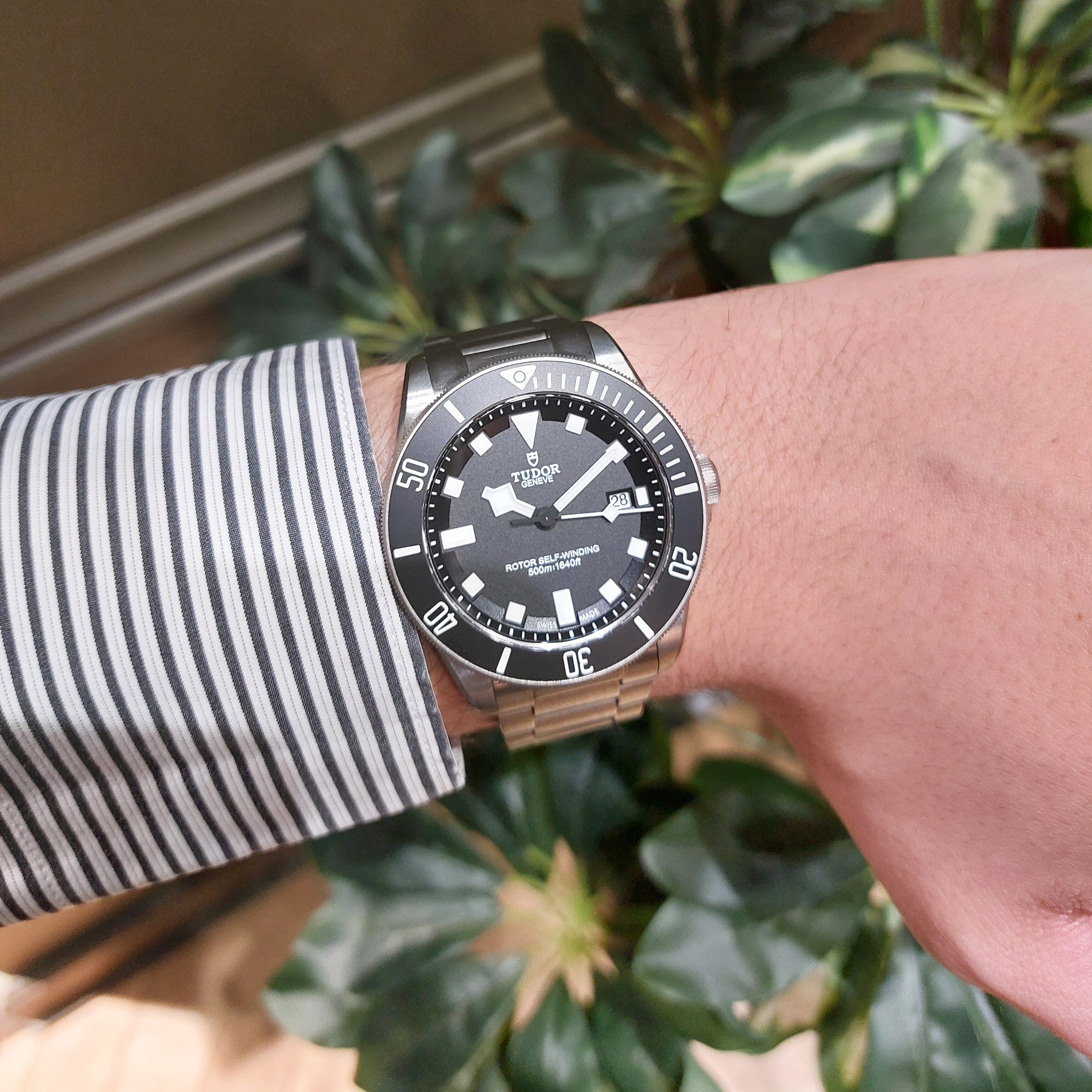 Conçue pour la plongée professionnelle, la Tudor Pelagos allie performance et robustesse. Son boîtier en titane de 42 mm, léger et résistant, s’accompagne d’une lunette en céramique noire pour une précision optimale.